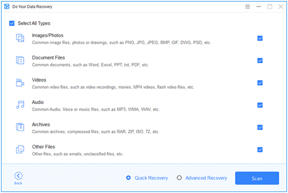 DoYourData also offers Mac version of data recovery software to recover deleted files from Mac-based hard drive. Actually, you just need to download and install Mac version of Do Your Data Recovery Free. This Mac data recovery freeware also offers two scanning modes: quick scan and deep scan. When the trash bin is emptied on Mac, run this data recovery software to scan the Mac-based hard disk drive, then it will find the deleted files, even the files were deleted a long time ago.