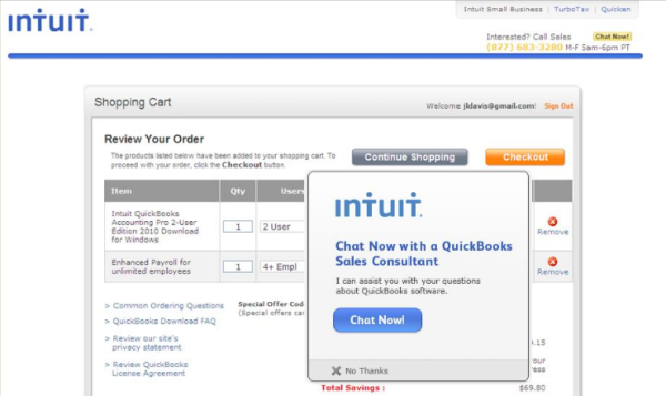 Intuit Enterprise introduced chat in various spots on their website. Adding chat to the checkout process resulted in a 20% increase in conversions and a 43% increase in average order value.