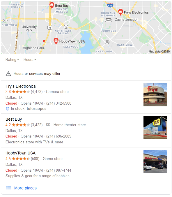 Geo-location will immediately be checked against your location—and the better optimized your website, the more chances of it showing up in top results.