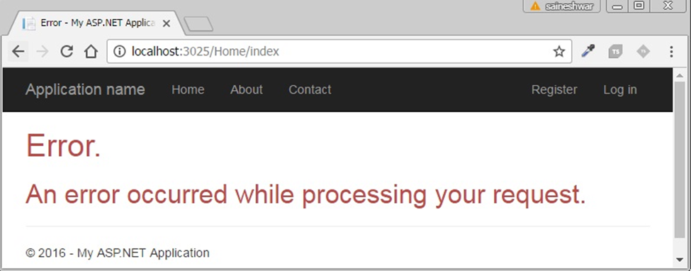 The following Error View screen will appear whenever we will try to open any pages among Index, About and Contact.
