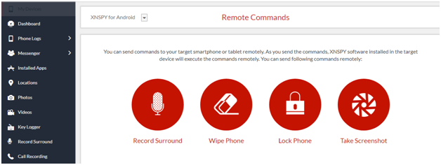 Remote control:Xnspy Android spying app is certainly a hit when it comes to its remote monitoring ability. It can perform different functions remotely. For example, if you want to hear the surroundings of the phone, you can use its Ambient Recorder which records the surroundings of the phone even if it is not on a call. Similarly, you can lock a device remotely and even wipe all its data if it is stolen.