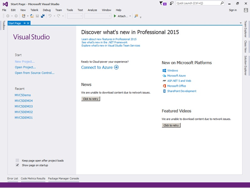 Open the Visual Studio and click Create New Project.
